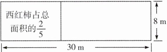 2. 如图,一块菜地要种三种蔬菜,除了西红柿,剩下的地按$2:1$的比种芸豆和丝瓜。芸豆和丝瓜各种多少平方米?(6分)