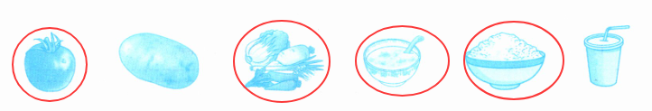 Ⅱ. 听音,圈出需要的食品。