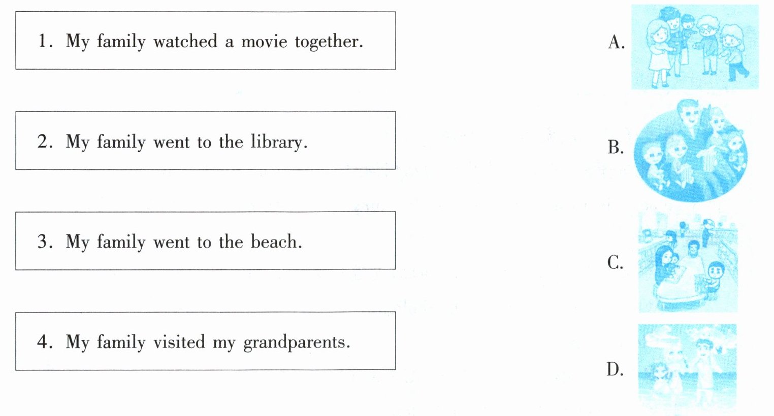 Ⅰ. 同学们正热烈地讨论着自己和家人暑假做过的事情。读一读这些句子,并将它们与对应的图片连线。
