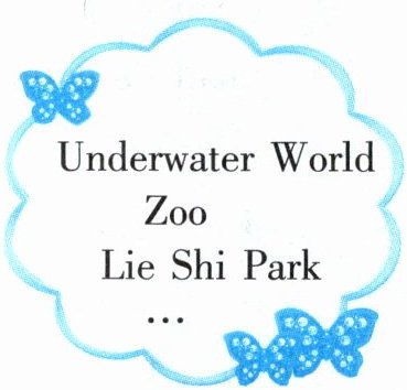 First, Anne wants to go to the Underwater World. At last, we want to go to the Lie Shi Park. There are many trees and flowers.