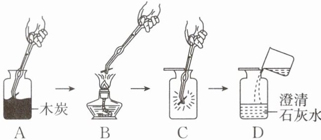13. 如图所示是木炭在氧气中燃烧的实验操作,试回答下列问题: