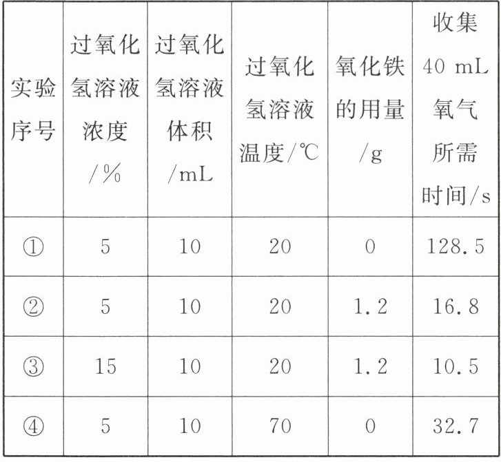 (3)将等体积、等浓度且温度相同的过氧化氢溶液与颗粒大小不同但质量相同的氧化铁混合,测定生成40mL氧气所需时间