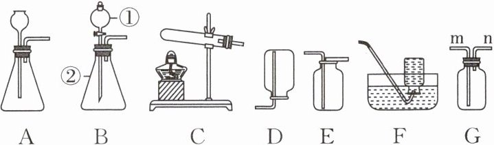 ;若选择 G 装置用排空气法收集氧气,检验气体是否收集满的方法是将带火星的木条放在n口,若木条复燃,则说明已收集满