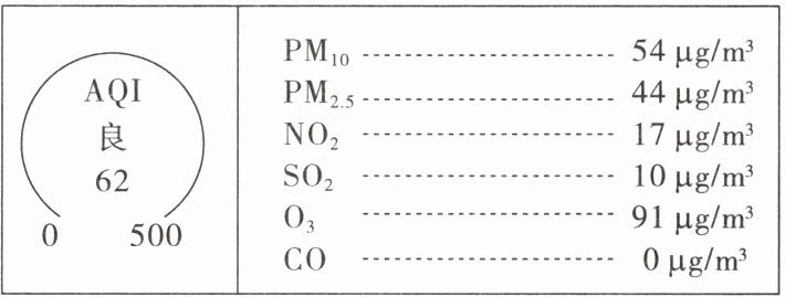 (2)同学们找到一个微型空气质量“检测站”,观察并记录某时间显示的数据如下表: