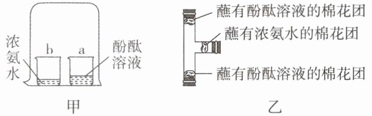 10. 如图甲是探究分子运动现象的实验装置图,如图乙是某化学兴趣小组改进的实验装置图。已知:氨气的密度比空气小,则下列说法不正确的是(