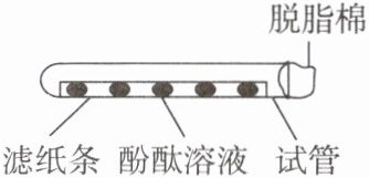 该同学进行了如下操作:①取一长条形滤纸,等距离滴加无色酚酞溶液;②将滴加了无色酚酞溶液的长条形滤纸放入一支洁净的试管中,并在试管口塞一团脱脂棉;③在脱脂棉上滴加几滴浓氨水。