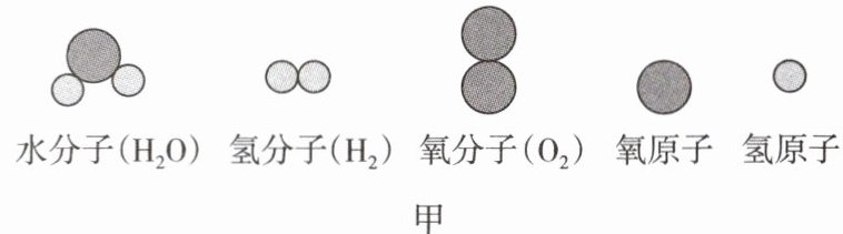 (1)结合图甲中水、氢气、氧气的微观结构示意图,填写下面内容。