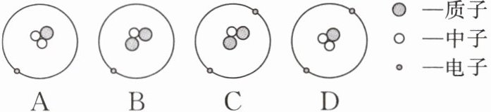 (2) 月壤中含有丰富的氦 - 3。已知氦 - 3 原子是一种含 2 个质子和 1 个中子的原子,图中模型能表示氦 - 3 原子的是