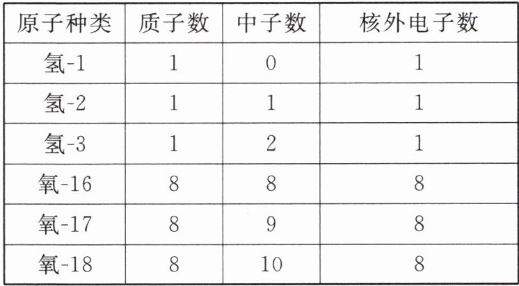 个中子。②表中的三种氢原子和氧-16原子最多可构成