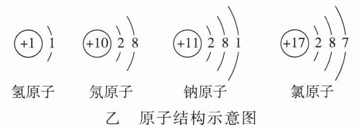(3)万物皆原子,原子是构成一切化学物质的基本单元。图乙是氢、氖、钠和氯的原子结构示意图。
