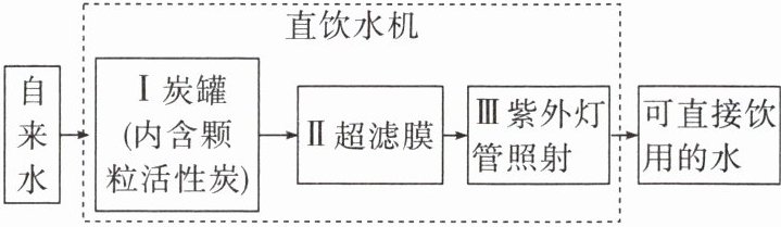9. 校园直饮水方便、清洁。如图是直饮水机内水处理的过程,下列说法错误的是(