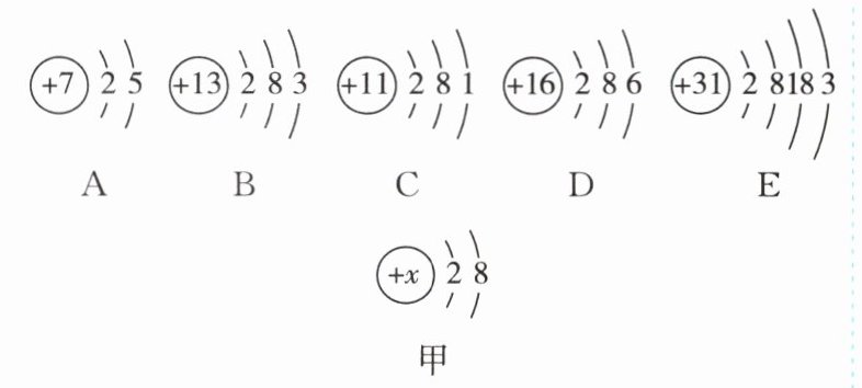 13. A、B、C、D、E 为 5 种粒子的结构示意图。