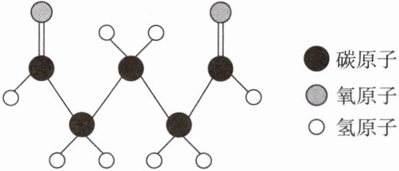 (2)解:由分子结构模型可知,每个戊二醛分子中含有5个碳原子、8个氢原子和2个氧原子,则其化学式为$C_5H_8O_2$,其中碳元素和氧元素的质量比为$(12×5):(16×2)=15:8$。