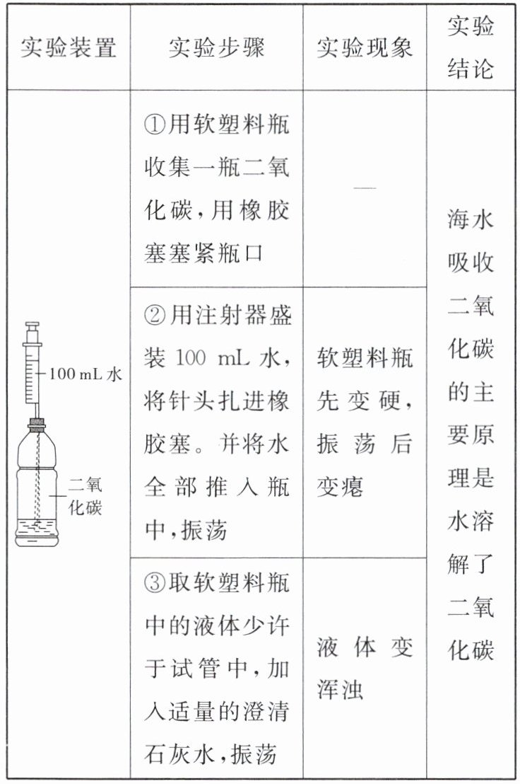 [作出猜想] 海水吸收二氧化碳的主要原理是水溶解了二氧化碳。