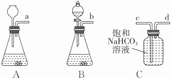 D.选择 $ B $、$ C $ 两装置,导管 $ b $ 接导管 $ c $ 可收集到一瓶 $ CO_2 $