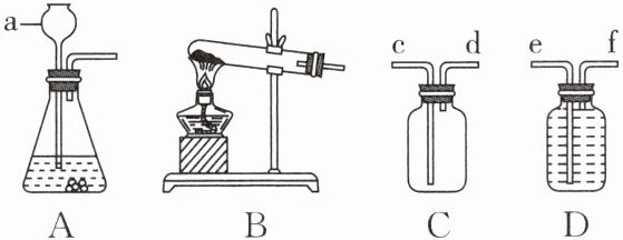 。(2)实验室制取并收集 $ CO_2 $,发生装置应选择装置