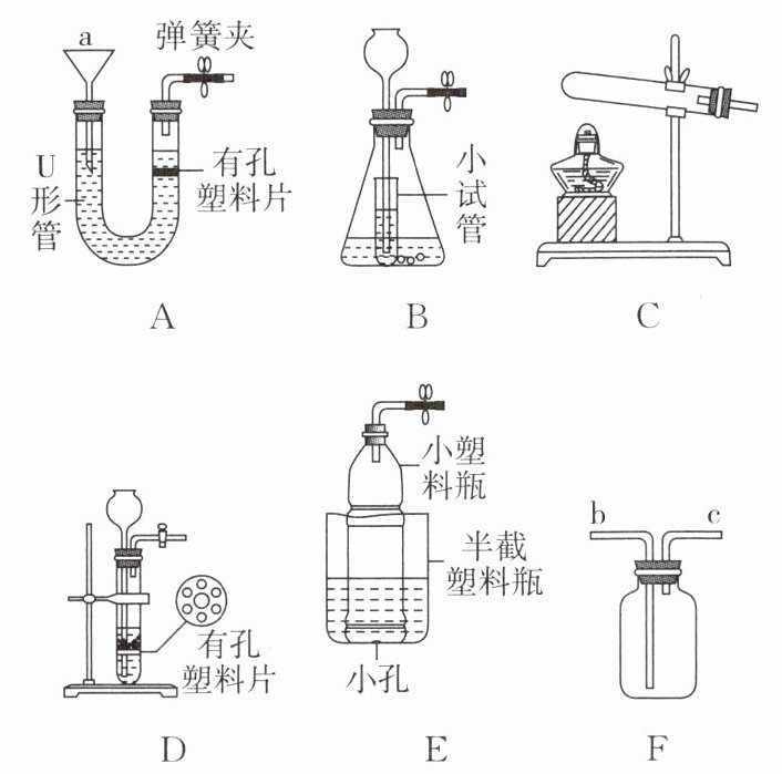 (3)图中可用于固液反应制备气体的装置(A、B、D、E)中,不能使反应随时发生或停止的装置是