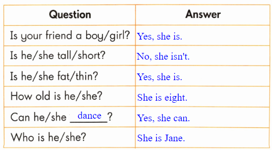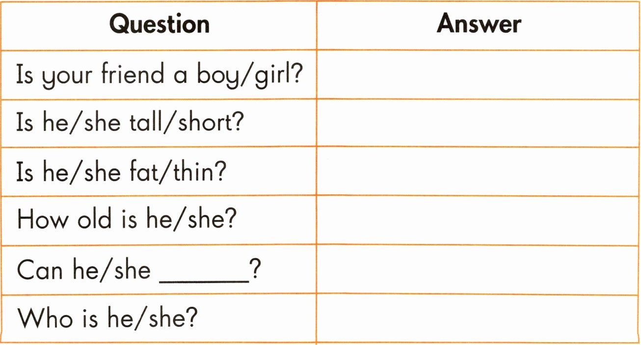 B Ask and write (通过问答了解别人朋友的情况,将答案填在表内)