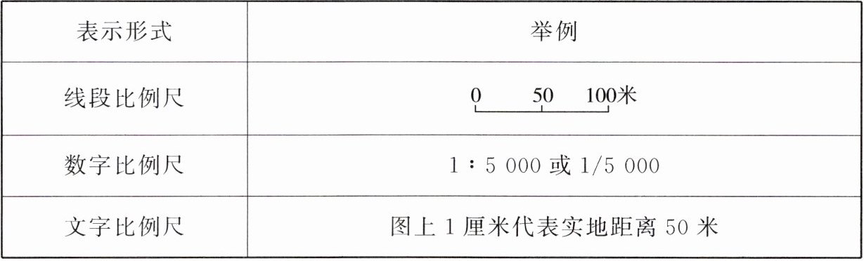|文字比例尺|图上 1 厘米代表实地距离 50 米|