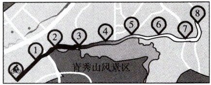 马老师是自行车骑行爱好者,下图是马老师一次骑行的地图轨迹记录的截屏图,图中显示了出发地以及每千米的位置,数字 1、2、3……示意骑行路线中距离出发地 1、2、3……千米。据此完成 3~4 题。