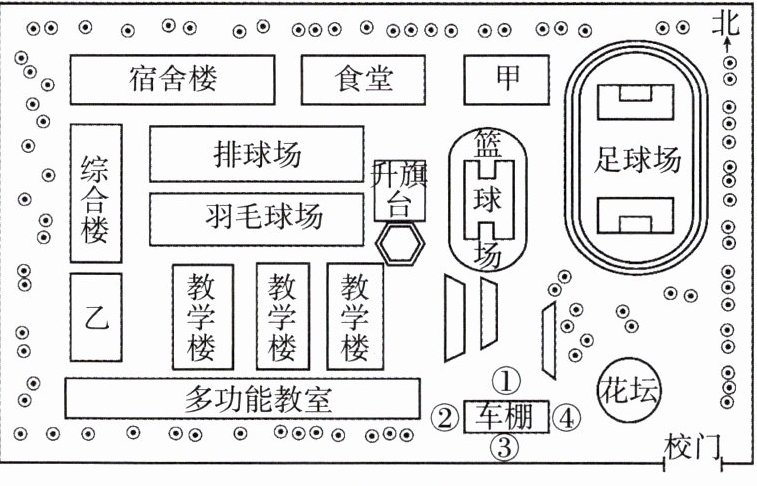 8. 校园是我们平时学习、生活的地方,布局合理、绿化适宜的校园更有利于我们的身心成长。读图并运用所学地理知识,完成下列问题。