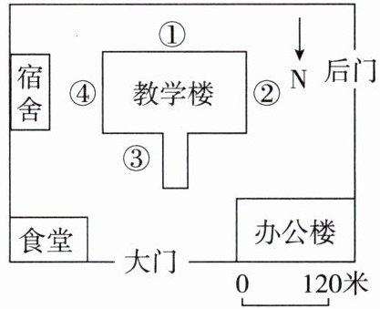 (3) 根据第(1)题的答案,分析某同学从宿舍楼前往多功能教室上课,若测量两地的图上距离为 4.2 厘米,当他保持 50 米/分钟的速度步行,则需要约____分钟。