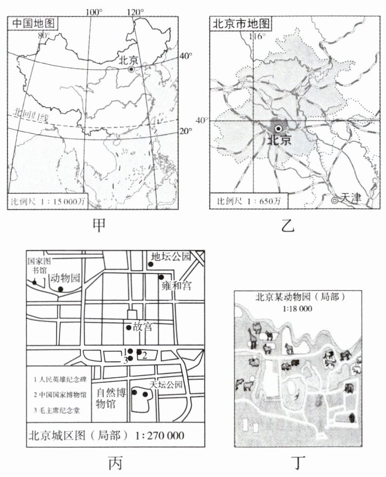 4. 调查北京天坛公园所在地区的旅游景点分布,可以选用的最合适的地图是( )