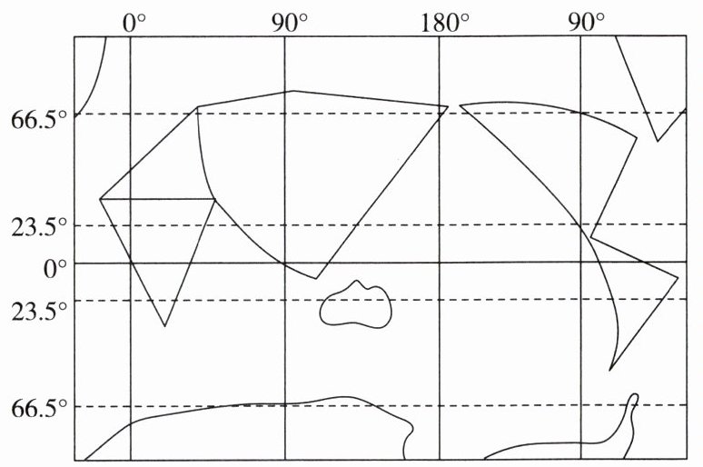 (5)此地图是地球投影变形后形成的,地球在投影过程中会产生投影面积变形。