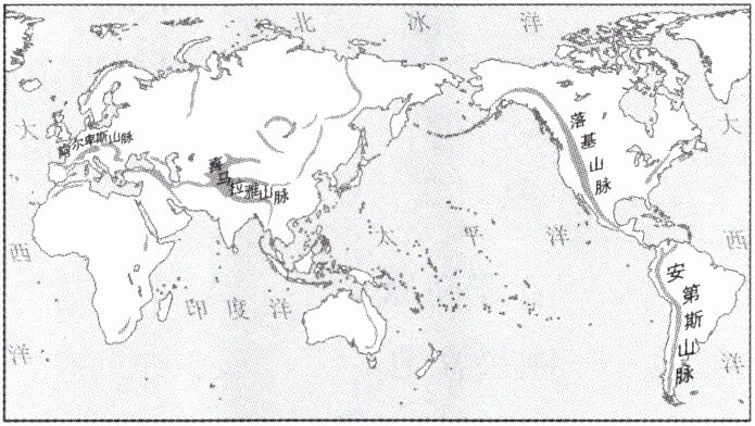 (2) 横贯亚欧大陆南部:主要有______山脉、阿尔卑斯山脉。