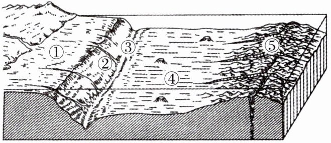 (3) 海洋底部和陆地表面一样,高低起伏,形态多样。读上面海底地形示意图,写出图中数码代表的地形名称:①______;②______;③______;④______;⑤______。