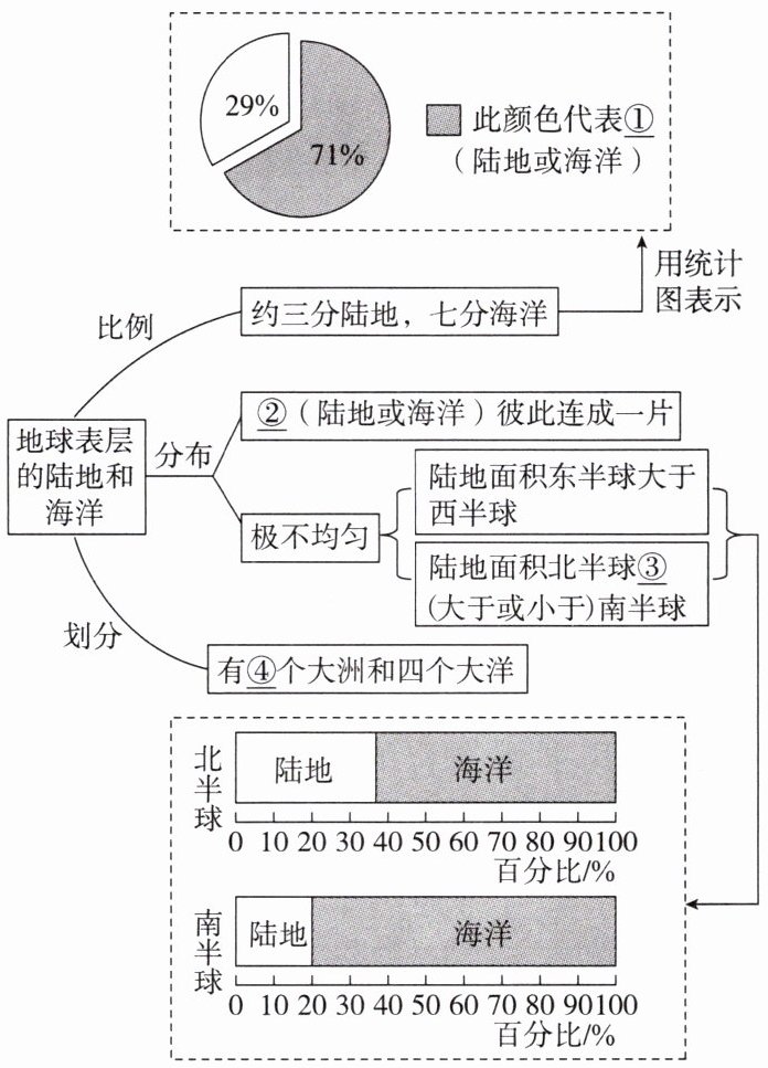(1) 用思维导图的形式认识世界海陆分布格局,完成下图填空。