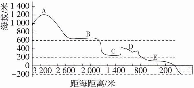 A______;C______;D______。B 与 E 地形的共同点是______,不同点是______。