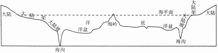 (3)大陆架 大陆坡 海沟 洋盆 洋中脊