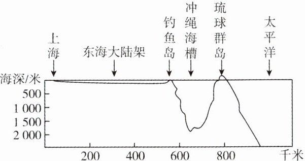 7. 自古以来,钓鱼岛及其附属岛屿就是我国的固有领土。据我国钓鱼岛附近地形剖面示意图可知,钓鱼岛地处我国东海( )