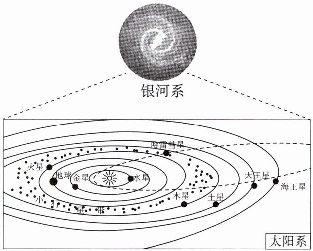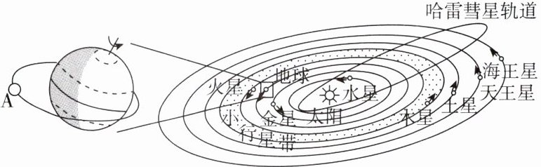 地球是太阳系八颗行星之一,与月球组成一个天体系统——地月系统。地球是目前宇宙中已知唯一存在生命的天体,是适合人类生存的唯一家园。下图为太阳系模式图。读图,完成 1~2 题。