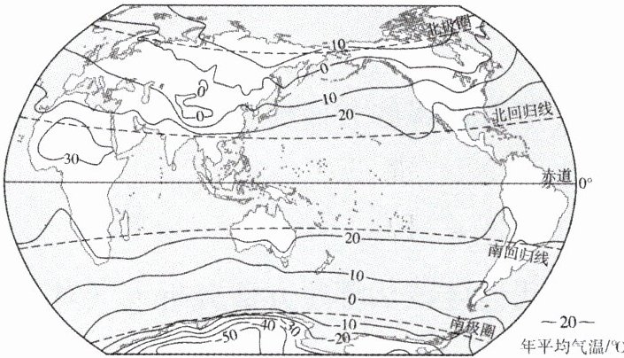 (2) 世界年平均气温大致由低纬向高纬逐渐______。