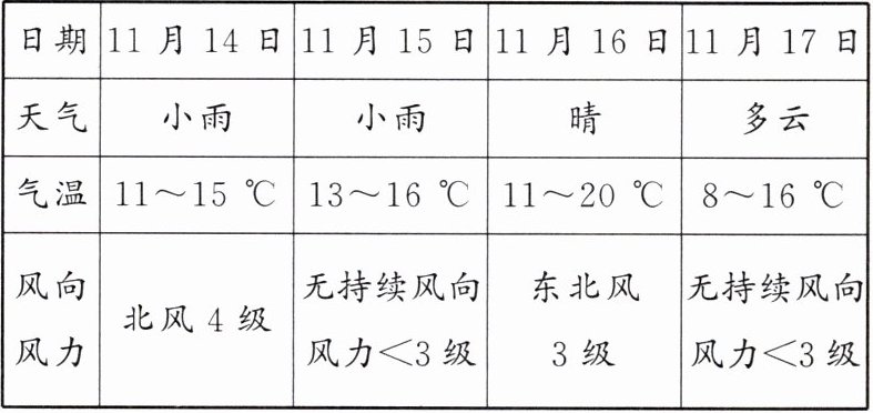 下表为 2024 年 11 月 14 日至 17 日某市天气资料表。据此完成 2~3 题。