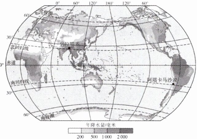 1. 赤道附近地区降水较______,两极地区降水较______。