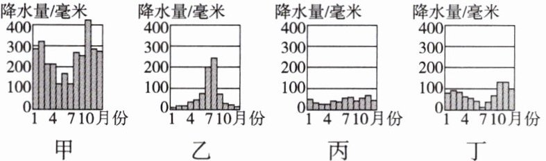 4. 根据降水的季节分配类型判断,甲地属于( )