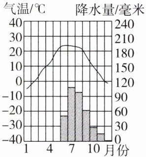 (3)夏季;原因:通过全年降水及气温特点可得,该市属于温带季风气候,降水主要集中在夏季,降水期长且降水量大,故有积水。