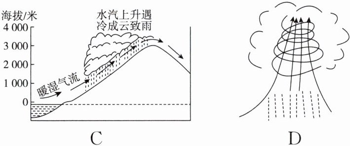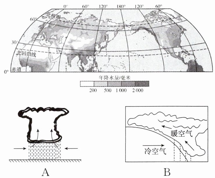 7. 下图为北半球年降水量分布图。①处的降水类型主要为( )