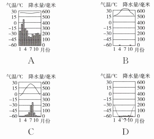9. 乙图中的景观所对应的气候资料图,最有可能是( )