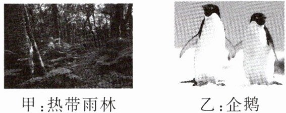 小琳在电视上观看了一部纪录片,纪录片中呈现了世界上不同的气候类型所对应的不同的自然景观。小琳截取了两幅最感兴趣的景观图。读下图,完成8~9题。