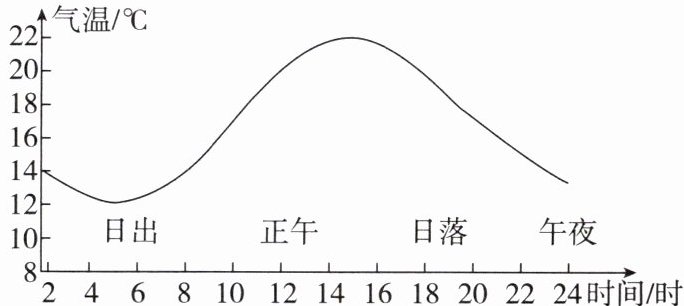 (1)分析气温日变化曲线图:一天当中,最高气温出现在______左右,最低气温出现在日出前后。这一天的气温日较差约为______℃。