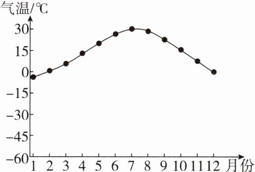 (2)分析气温年变化曲线图:图中气温曲线反映的是______半球的气温。一年中,北半球气温,通常大陆上______月最高,1月最低;海洋上8月最高,2月最低,比陆地上晚一个月。一年内的最高月平均气温与最低月平均气温的差,叫气温______。