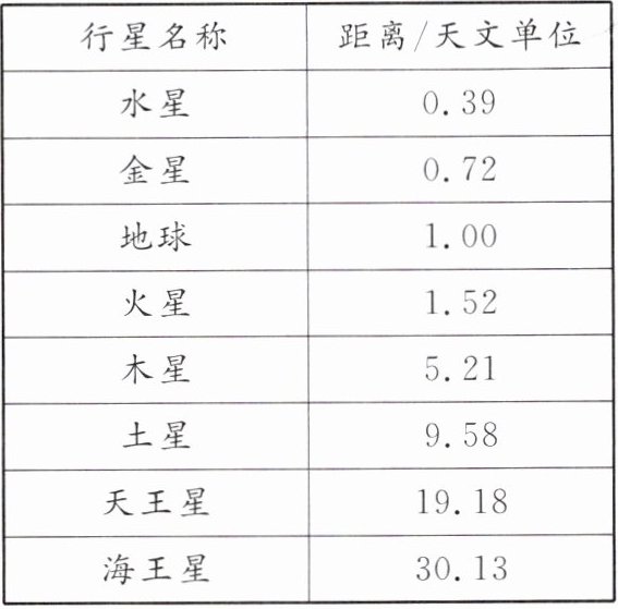 |行星名称|距离/天文单位|