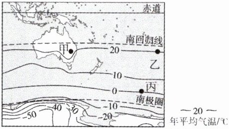 2. 读某区域某月平均气温分布略图,推断造成甲、乙两地气温差异的主要因素是( )