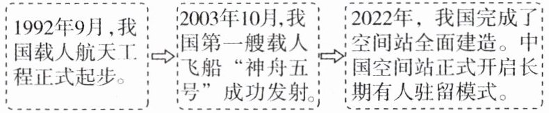 如1970年我国成功发射第一颗人造地球卫星——“东方红一号”;2003年“神舟五号”飞船圆满完成我国首次载人航天飞行;2022年我国“天宫”空间站全面建成;等等。