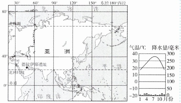 下图为德拉伊耶遗址位置示意图以及当地气候资料图。