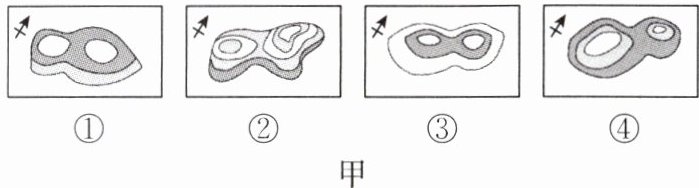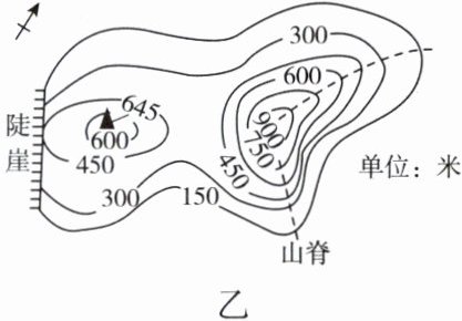 某实验中学学生在地理实践活动课上,用橡皮泥制作了一组等高线地形模型(图甲),图乙是同学们制作模型时使用的底图。读图,完成 12~13 题。
